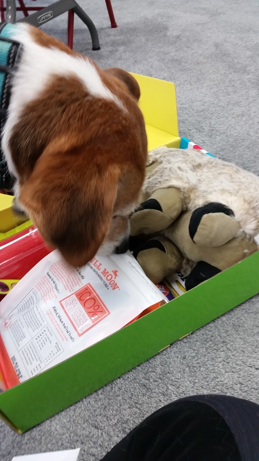 My box shipped on October 27th, and I received it via Fedex today as I am only one state over from the PetTreater location. I tried to remember to snap pictures, but Jake was running around and distracting me! Even though we have boxes constantly coming in to our house (my mother does horse supply retail stuff), he somehow figured out that this was his box and freaked out. Even my mother, who is pretty cynical over subscription boxes, thought he looked like a kid at Christmas and demanded I get him another sometime!